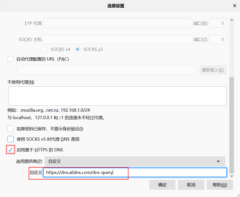 第三步:在设置页面的底部,找到并勾选“启用基于HTTPS的DNS”,选择“自定义”的提供商,并输入接口地址: https://dns.alidns.com/dns-query ,点击【确定】。